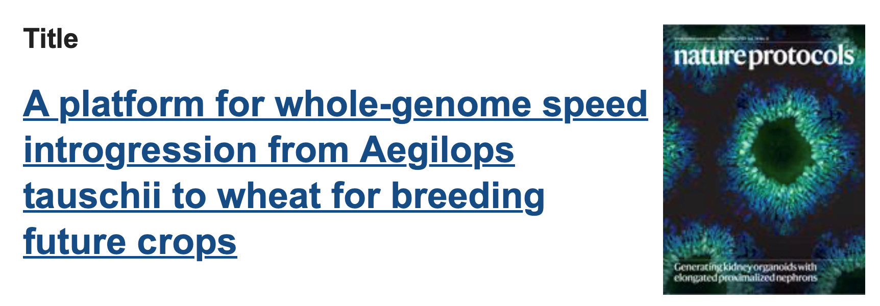 1.Zhou, Y. et al. Introgressing the Aegilops tauschii genome into wheat as a basis for cereal improvement. Nat. Plants 7, 774–786 (2021).